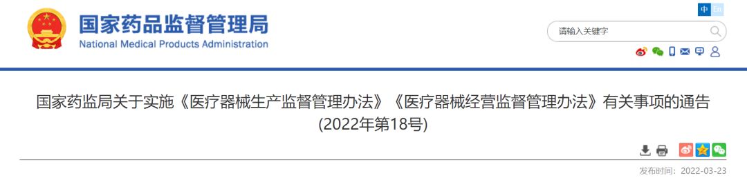 《醫(yī)療器械生產(chǎn)監(jiān)督管理辦法》(國(guó)家市場(chǎng)監(jiān)督管理總局令第53號(hào))(以下簡(jiǎn)稱《生產(chǎn)辦法》)《醫(yī)療器械經(jīng)營(yíng)監(jiān)督管理辦法》(國(guó)家市場(chǎng)監(jiān)督管理總局令第54號(hào))(以下簡(jiǎn)稱《經(jīng)營(yíng)辦法》)已經(jīng)發(fā)布,自2022年5月1日起施行?,F(xiàn)將有關(guān)事項(xiàng)通告如下: