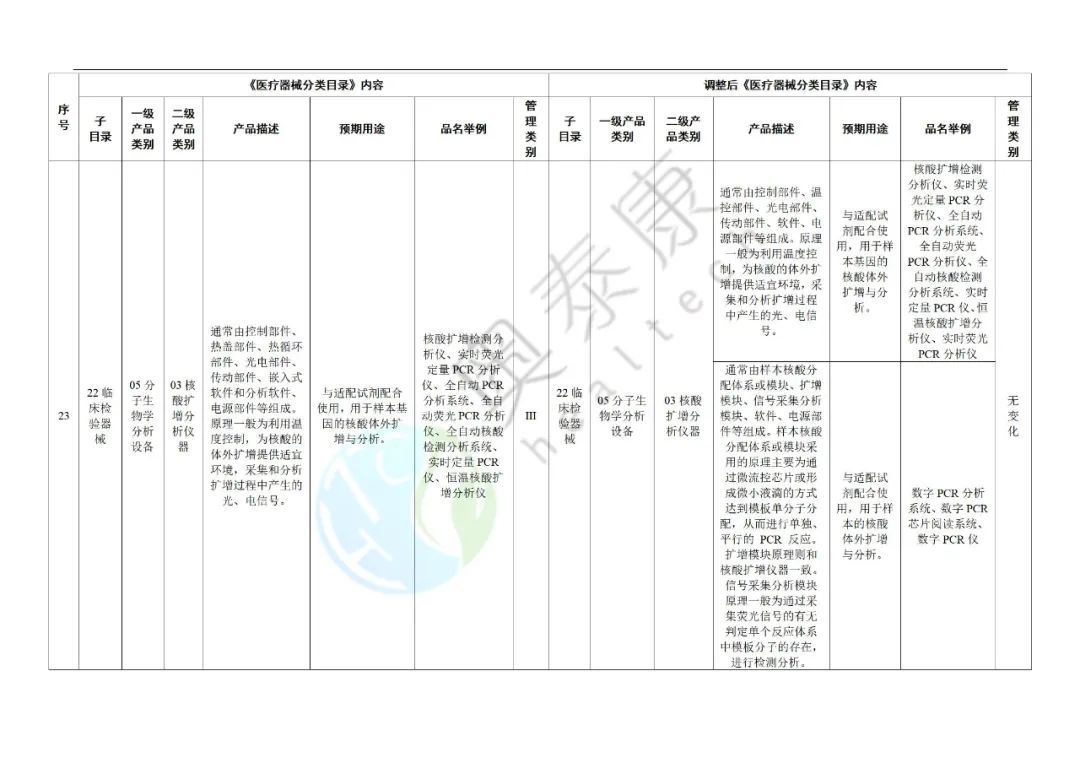 附件:《醫(yī)療器械分類目錄》部分內(nèi)容調(diào)整表