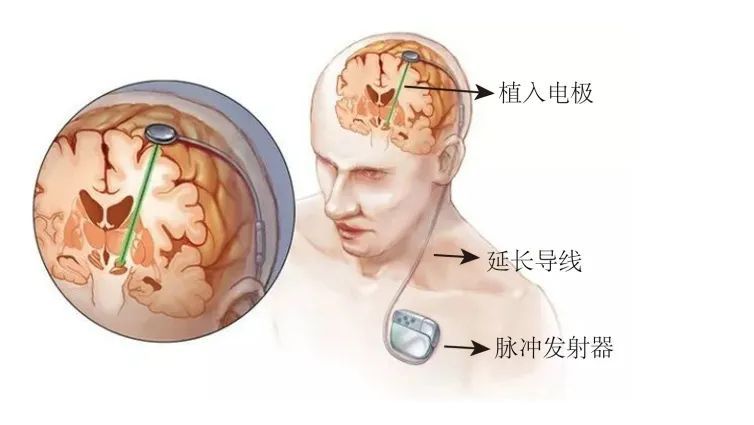 在發(fā)病初期,藥物治療是首選,后期隨著疾病進展,藥物逐漸失去療效,就可以使用目前被廣泛認可的首選外科療法——腦深部電刺激療法(Deep Brain Stimulation,DBS),也稱腦起搏器,它是一種有源植入醫(yī)療器械,于20世紀70年代出現(xiàn),是通過立體定向技術(shù),將電極植入腦內(nèi)特定核團,連接植入胸部的脈沖發(fā)生器,發(fā)放電脈沖對特定核團神經(jīng)元的功能進行調(diào)控,以改善癥狀,是目前國際上最先進的神經(jīng)調(diào)控技術(shù),用于藥物不能有效控制運動障礙癥狀的帕金森患者。