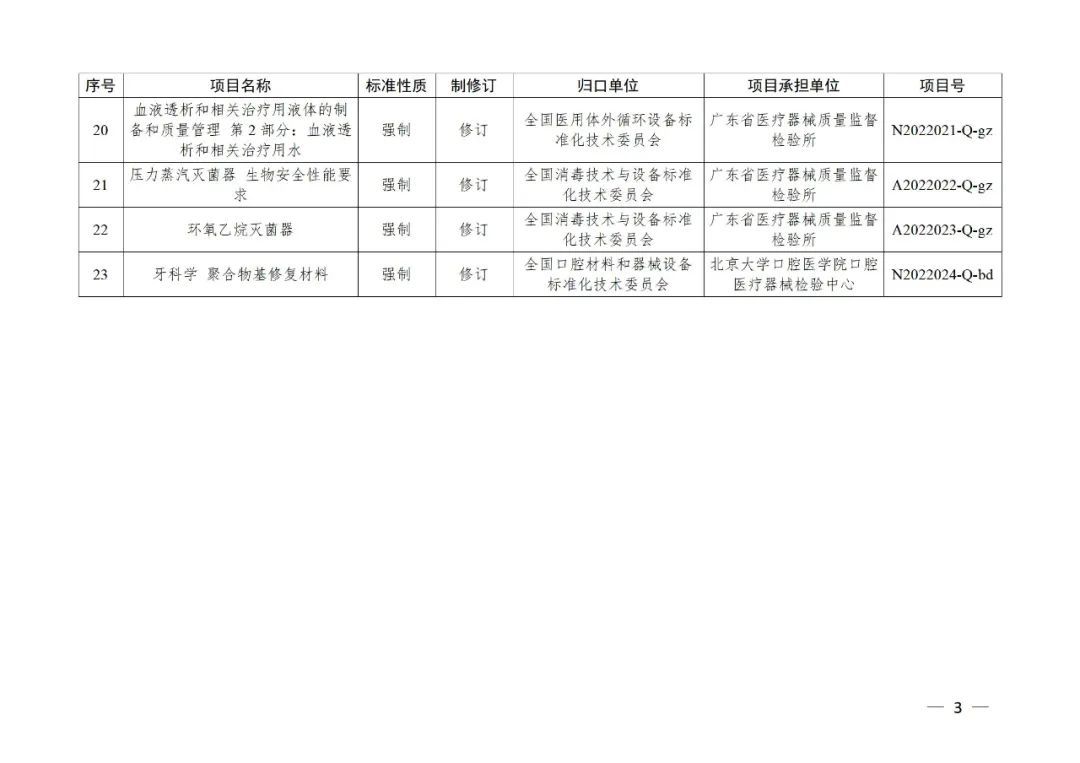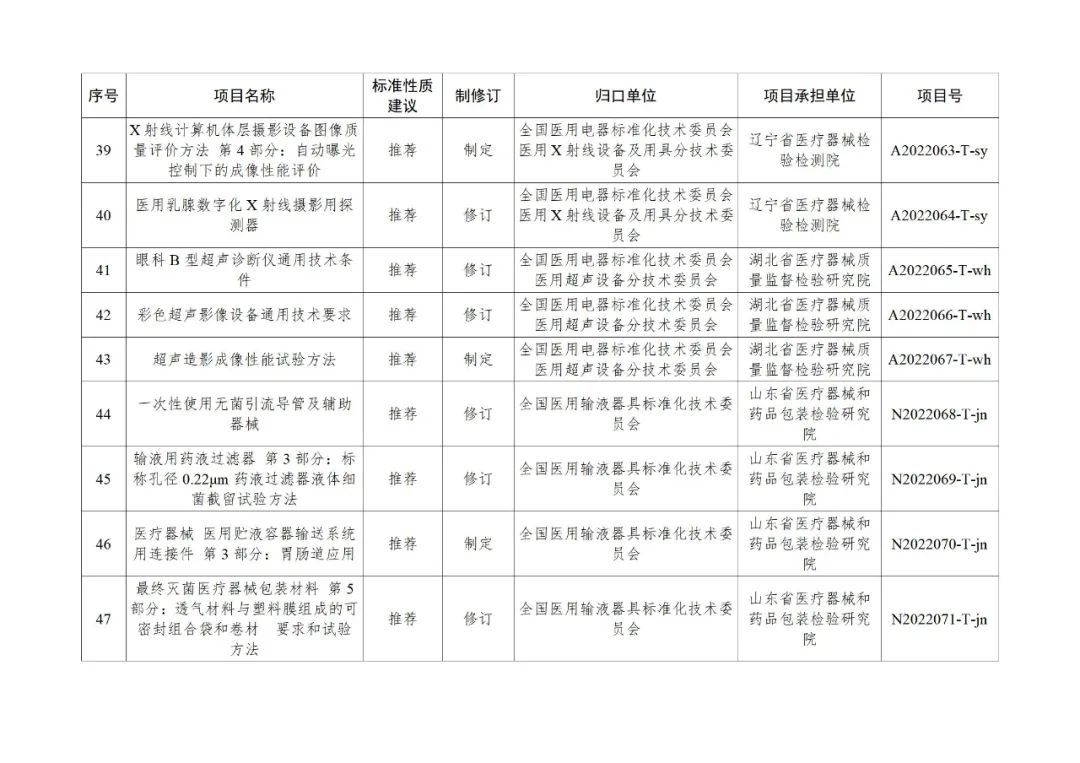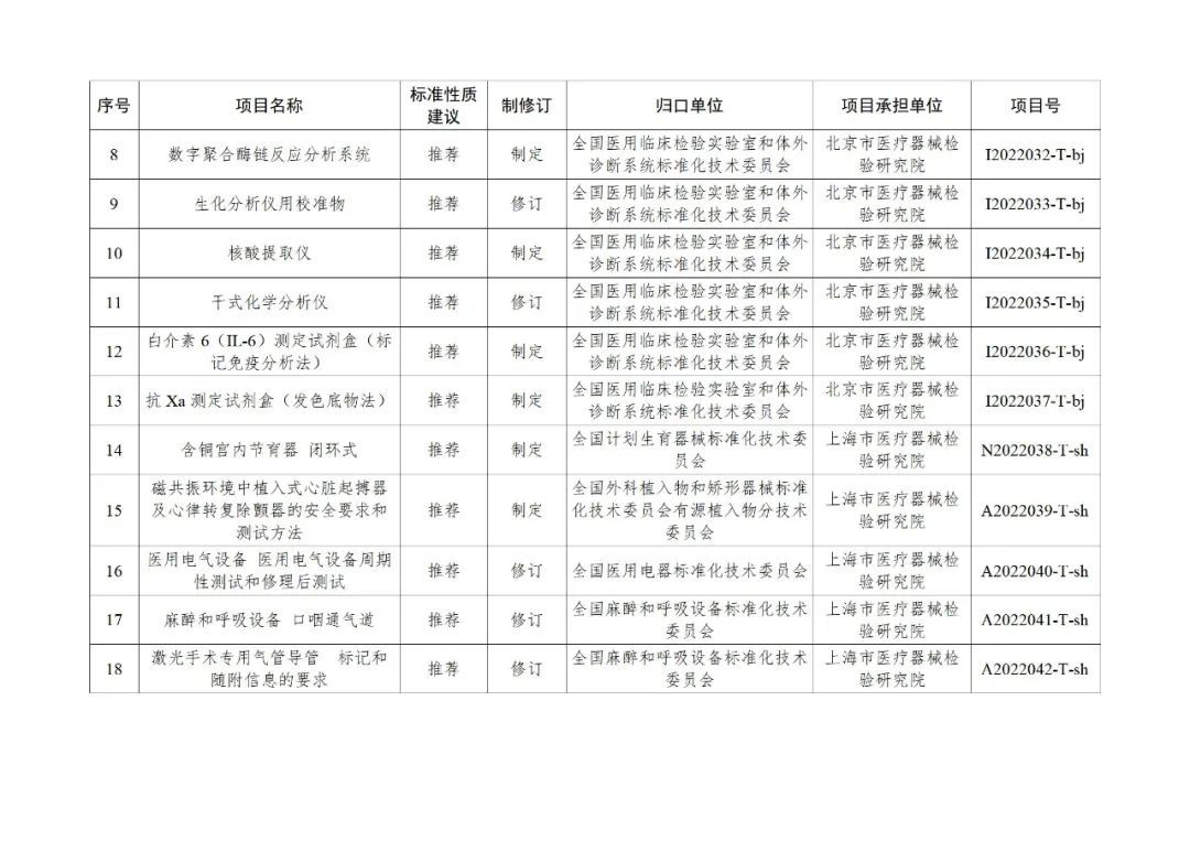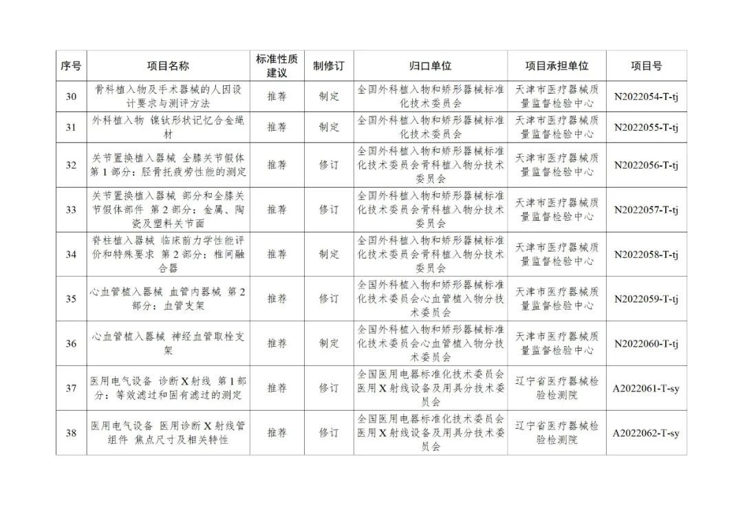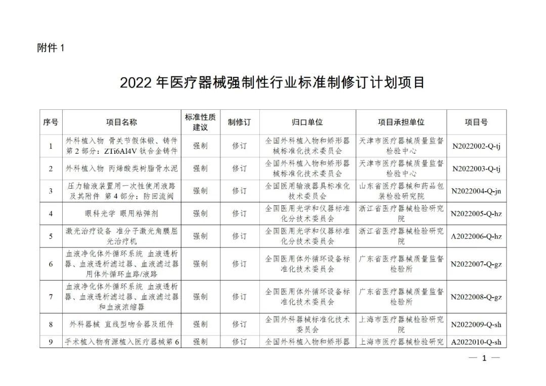 為貫徹國務(wù)院辦公廳《關(guān)于全面加強(qiáng)藥品監(jiān)管能力建設(shè)的實(shí)施意見》,落實(shí)《“十四五”國家藥品安全及促進(jìn)高質(zhì)量發(fā)展規(guī)劃》有關(guān)要求,按照國家藥監(jiān)局醫(yī)療器械行業(yè)標(biāo)準(zhǔn)制修訂工作部署,現(xiàn)將2022年醫(yī)療器械行業(yè)標(biāo)準(zhǔn)制修訂計(jì)劃項(xiàng)目印發(fā)給你們,有關(guān)要求通知如下: