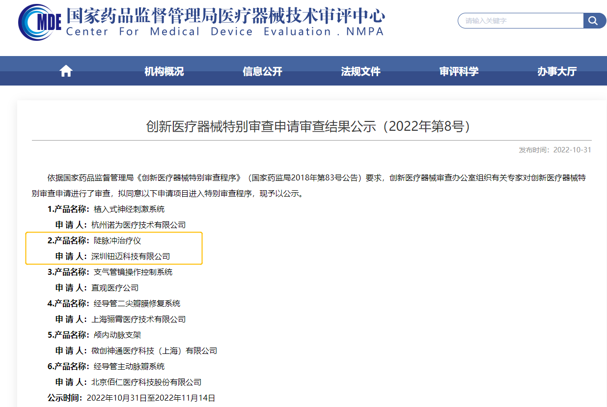 10月31日,深圳鈕邁科技研發(fā)的創(chuàng)新醫(yī)療器械“陡脈沖治療儀”進(jìn)入特別審查程序,奧泰康提供創(chuàng)新申報和臨床試驗服務(wù),系第18項創(chuàng)新產(chǎn)品臨床服務(wù)。