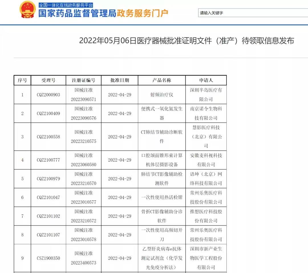 5月6日,奧泰康擔(dān)任臨床試驗服務(wù)顧問,助力兩款CT肺結(jié)節(jié)輔助診斷軟件獲國家藥監(jiān)局批準(zhǔn)上市。截至目前,奧泰康已深度參與50余個人工智能(AI)臨床注冊項目,并獲得9張三類醫(yī)療器械注冊證。