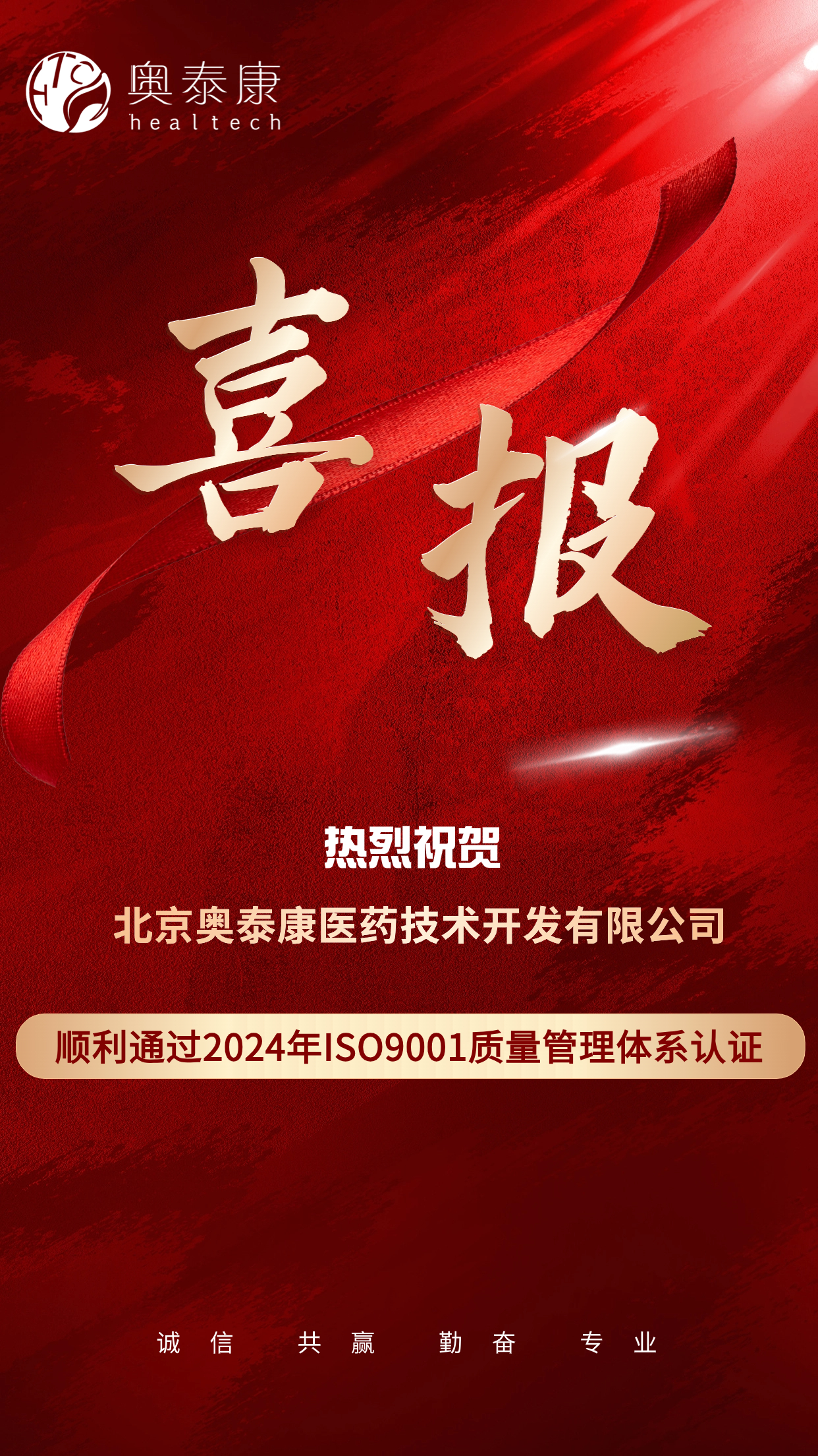 奧泰康通過(guò)2024年ISO9001質(zhì)量管理體系年審認(rèn)證,我們將持續(xù)推進(jìn)質(zhì)量建設(shè),提升綜合實(shí)力,保證在研臨床項(xiàng)目高質(zhì)量、高效率運(yùn)行