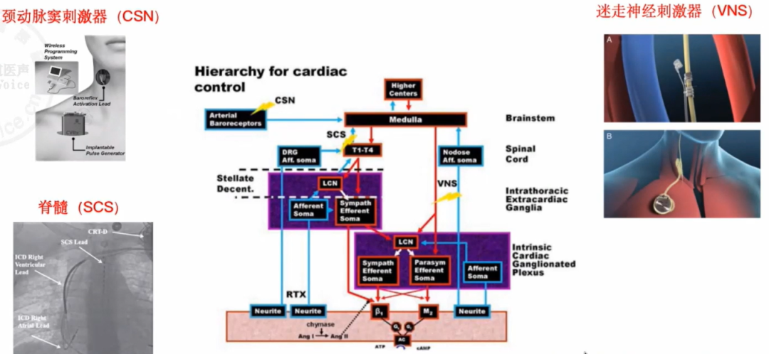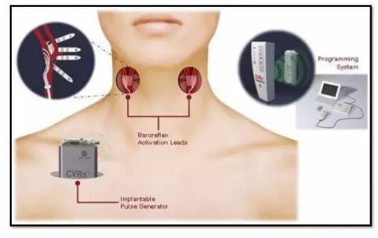 壓力感受器是位于頸動脈竇和主動脈弓中的解剖結(jié)構,壓力感受激活療法 是一種治療心力衰竭的創(chuàng)新性電療法,裝置由植入式脈沖發(fā)生器和頸動脈竇電極組成,通過電刺激頸動脈壁的壓力感受器來調(diào)節(jié)自主神經(jīng)系統(tǒng),可以同時增加迷走神經(jīng)活性并降低交感神經(jīng)活性,從而改善心力衰竭患者心功能和臨床預后。