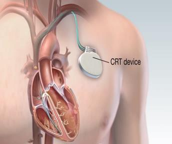 心臟再同步化治療,指雙心室起搏器,是通過雙心室同步起搏的方式,幫助心衰患者實現(xiàn)正常起搏的裝置。CRT包括一個口袋大小的脈沖發(fā)生器和三根電極導線,可被植入人體。通過監(jiān)測心律,在發(fā)現(xiàn)異常后,信號發(fā)生器發(fā)送電流脈沖,刺激心室重新同步,從而改善癥狀,提高患者的心臟泵血效率。目前有兩種類型的CRT裝置:植入式心臟再同步治療起搏器(CRT-P)和植入式心臟再同步治療除顫器(CRT-D)。主要區(qū)別在于后者除了改善心臟收縮同步性外,還具備除顫功能,能及時處理危及生命的室性心律失常,避免猝死。