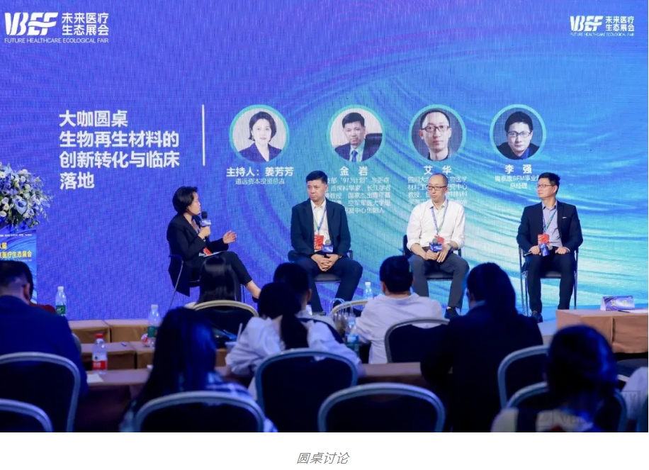 隨后,科技部“973計(jì)劃”與重點(diǎn)項(xiàng)目首席科學(xué)家、長(zhǎng)江學(xué)者特聘教授、國家杰出青年基金獲得者、空軍軍醫(yī)大學(xué)組織工程研發(fā)中心創(chuàng)始人金巖教授;四川大學(xué)國家生物醫(yī)學(xué)材料工程技術(shù)研究中心教授、國際生物材料科學(xué)與工程聯(lián)合會(huì)Fellow艾華教授;奧泰康SFM事業(yè)部總經(jīng)理李強(qiáng)先生以及道遠(yuǎn)資本投資總監(jiān)姜芳芳共同圍繞《生物再生材料的創(chuàng)新轉(zhuǎn)化與臨床落地》這一主題進(jìn)行了分享與探討。