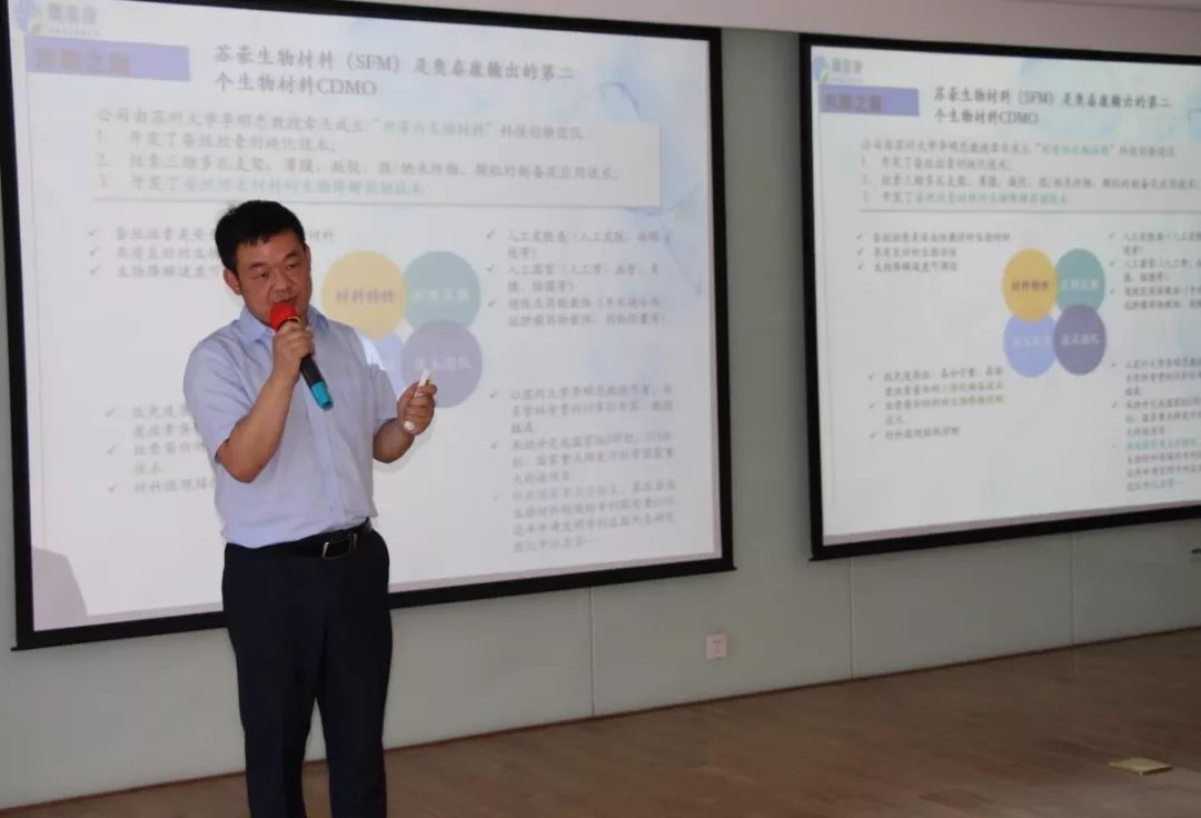 培訓(xùn)會在下午1:30準(zhǔn)時開始,集團(tuán)CEO饒總對公司整體發(fā)展做詳細(xì)講解,饒總分別從“企業(yè)發(fā)展歷程”、“管理團(tuán)隊介紹”、“我們的未來發(fā)展”三大方面進(jìn)行介紹,培訓(xùn)中,饒總憶苦思甜,深情講述奧泰康發(fā)展初期的鳳凰涅槃,在場員工無一不為之動容,為公司初期艱苦奮斗,堅守信念的精神所感動;之后奧泰康進(jìn)入快速發(fā)展階段,先后獲得多項創(chuàng)新醫(yī)療器械批件,并參與多項國家重點(diǎn)研究項目,并與多家國內(nèi)外知名企業(yè)合作,擁有醫(yī)療器械CDMO行業(yè)唯一的已投產(chǎn)GMP車間等等,從最初單項的CRO項目服務(wù)延伸到CRO/CDMO一體化服務(wù),致力于成為醫(yī)藥行業(yè)MA解決方案的領(lǐng)導(dǎo)者;