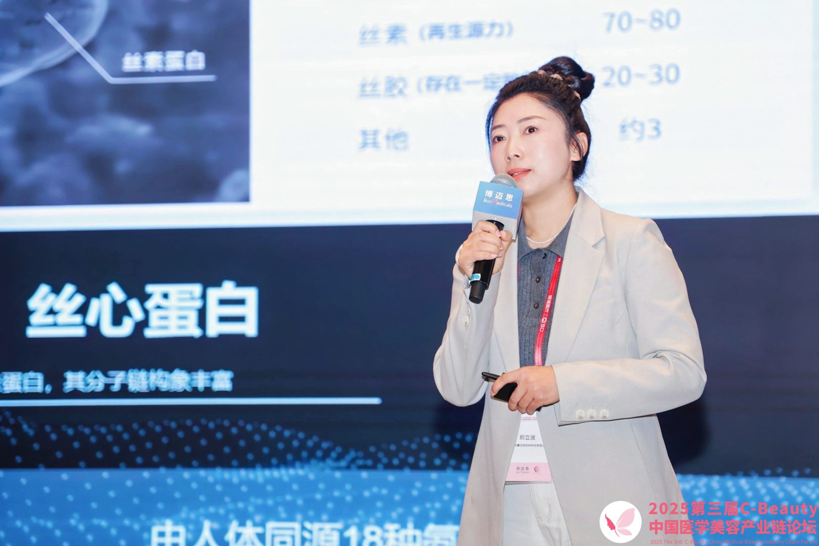 鄭立波女士圍繞絲素蛋白的天然優(yōu)勢、技術(shù)突破與美妝市場前景進(jìn)行了深度分享。