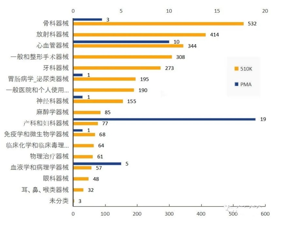 截止2021年1月4日,2020年美國FDA共批準2906個510(k)途徑的產品—心血管類產品數量名列前茅。